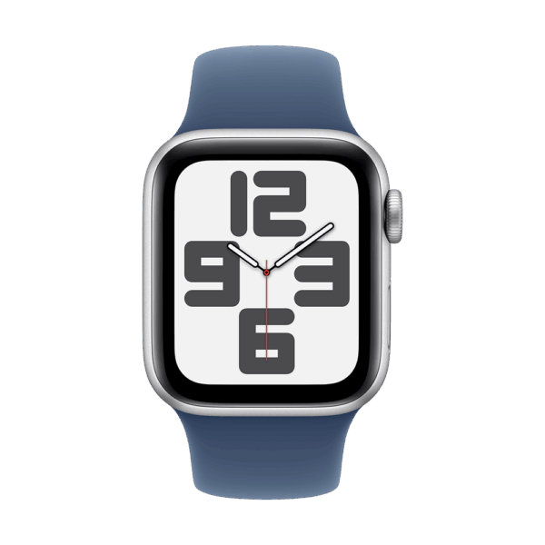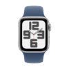 Apple Watch SE, connectivité GPS, boitier de 40 mm en Aluminium Argent, Bracelet sport en silicone jean, 2024.