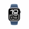 Apple Watch Series 10, connectivité GPS, boitier en Aluminium Argent, Bracelet Sport Silicone Jean, 2024.