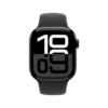 Apple Watch Series 10, connectivité GPS, boitier en Aluminium Noir de jais 42 mm, Bracelet Sport Silicone Noir, 2024.
