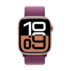 Apple Watch Series 10, connectivité GPS, boitier en Aluminium Or rose, Boucle Sport Prune, 2024.