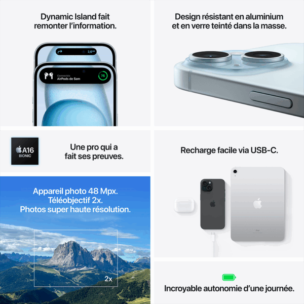 iPhone 15, 128 Go de Stockage, Bleu, 2023.