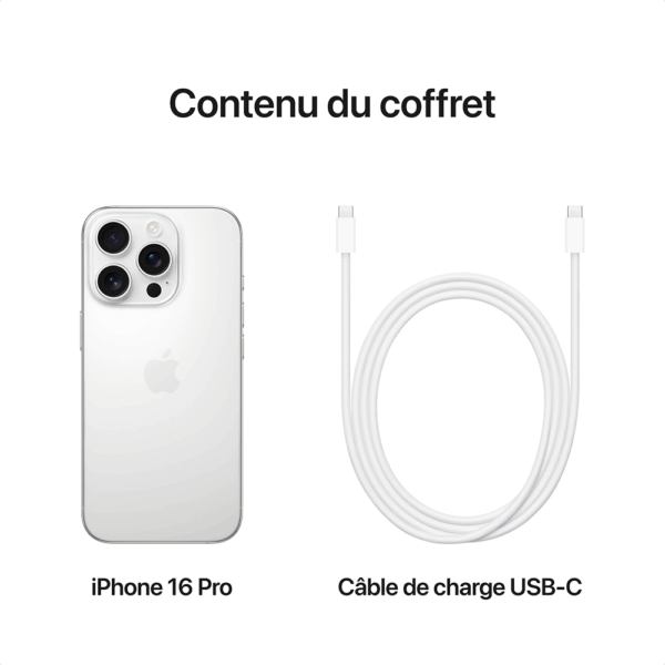iPhone 16 Pro, 512 Go de Stockage, Titane blanc, 2024.