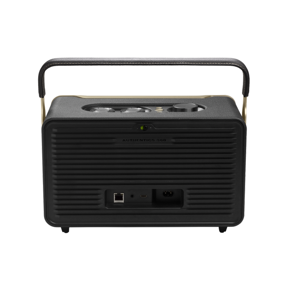 L’enceinte JBL Authentics 200 s’inspire des designs classiques de JBL pour un look qui s’accorde avec toutes les pièces et remplit n’importe quel espace, grand ou petit, avec un son JBL de qualité supérieure. Le cadre en aluminium haut de gamme de l’enceinte, son boîtier en similicuir sur mesure et sa grille Quadrex réinventée témoignent de l’attention que nous portons à chaque détail visuel, jusqu’au motif JBL autour du radiateur passif orienté vers le bas.