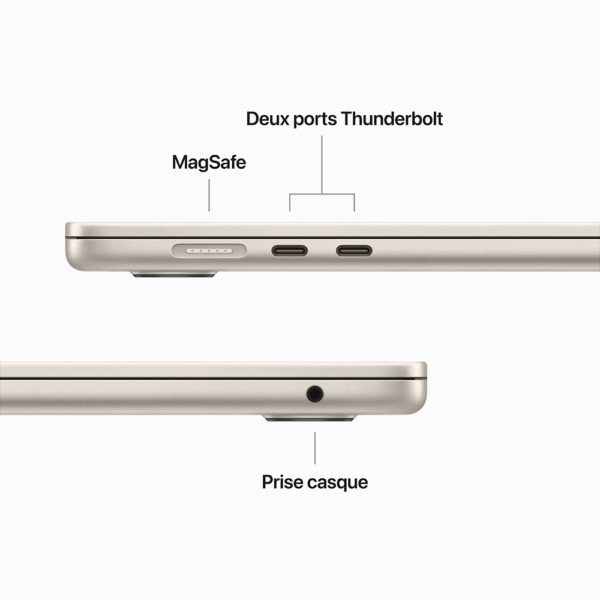 MacBook Air 15 pouces, Puce Apple M3, SSD de 256 Go de stockage, 8 Go de mémoire, Lumière stellaire, 2024.