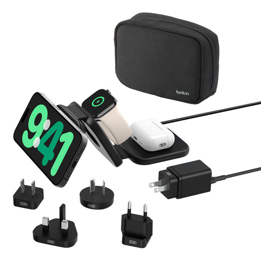 Recharge de tous vos appareils mobiles grâce à ce socle de recharge pliable extrêmement pratique ; Cet accessoire vous offre 15 W de recharge sans fil rapide pour votre iPhone 16, iPhone 15, iPhone 14, iPhone 13 et iPhone 12, 5 W pour votre Apple Watch et 5 W pour vos AirPods. Grâce à la technologie Qi2, vous profitez d’une connexion aimantée sécurisée en posant simplement votre iPhone sur la station de recharge.